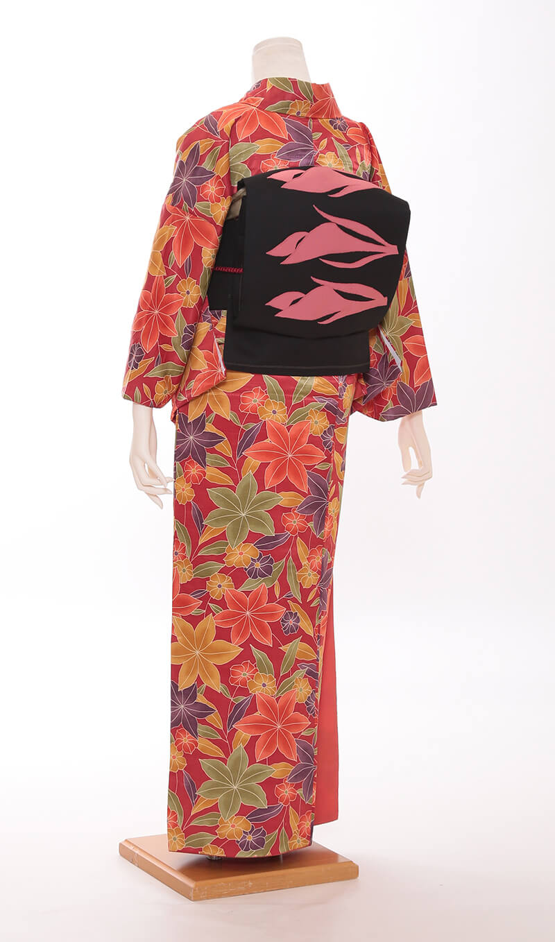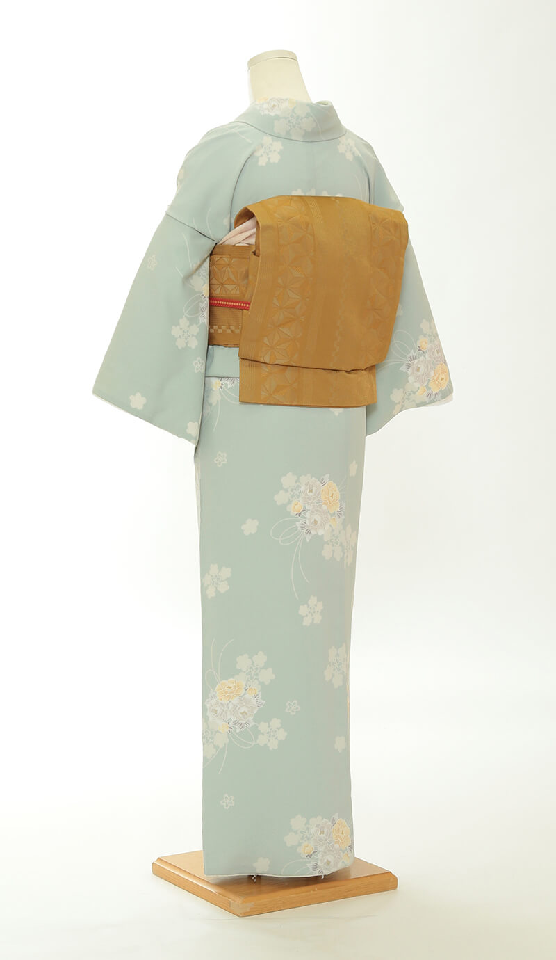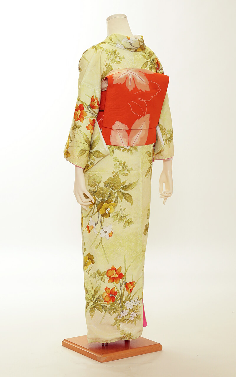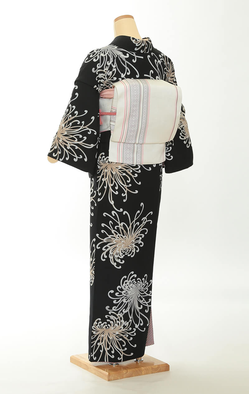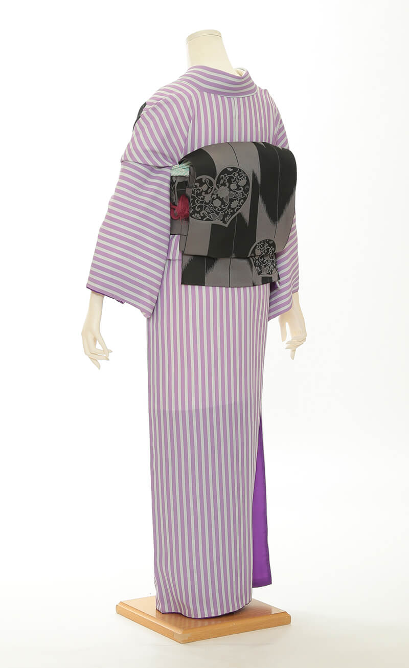 순견 허리띠도 다수 준비되어 있습니다. 허리띠 매듭은 '오타이코'라 불리는 사각형이며, 깔끔한 뒷모습을 연출합니다.