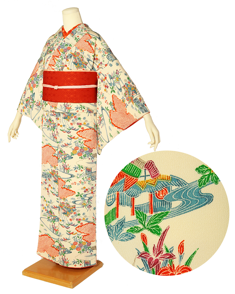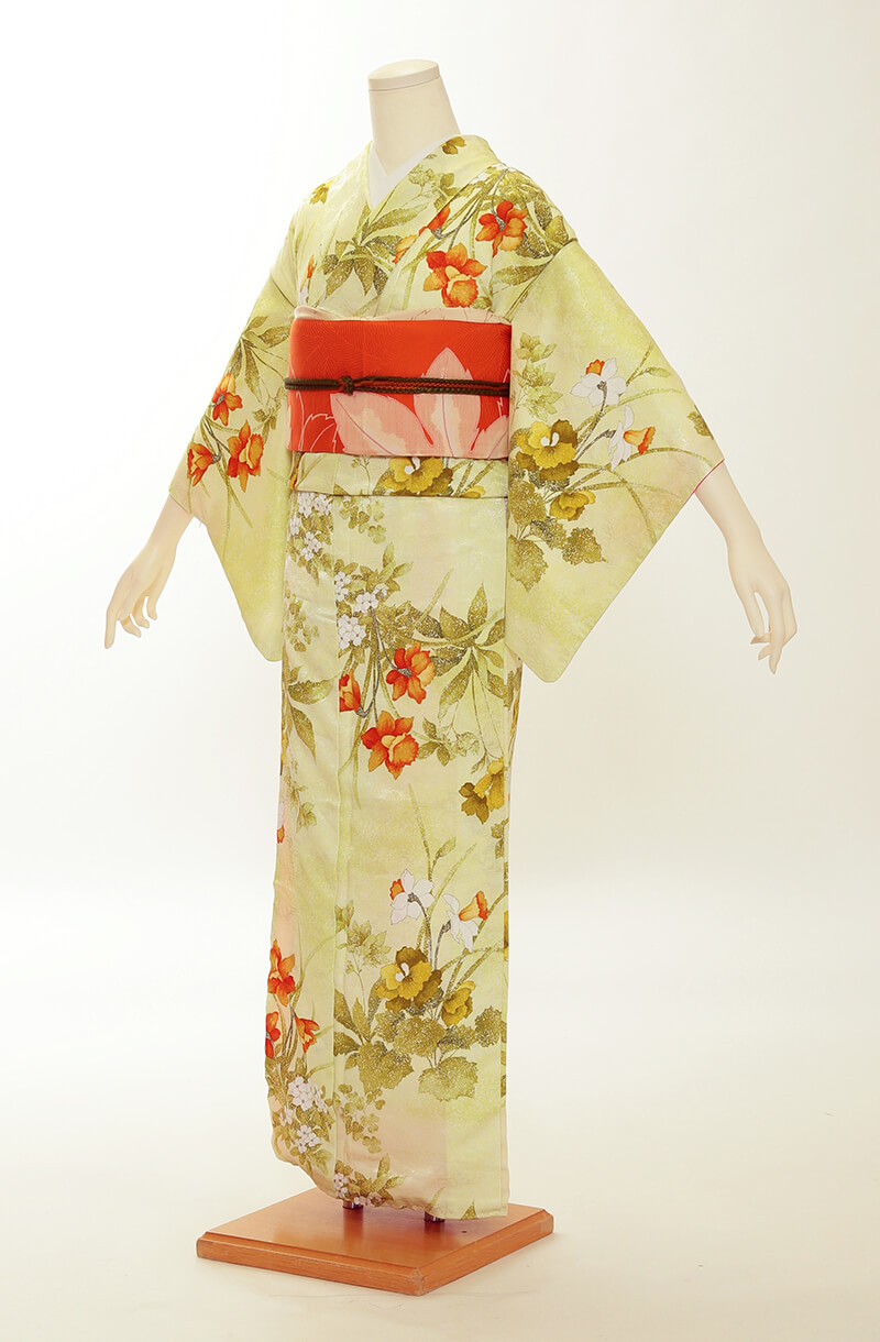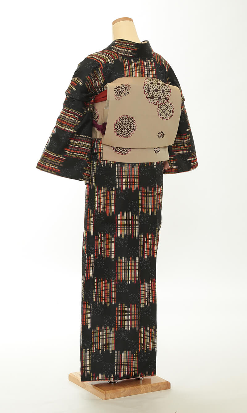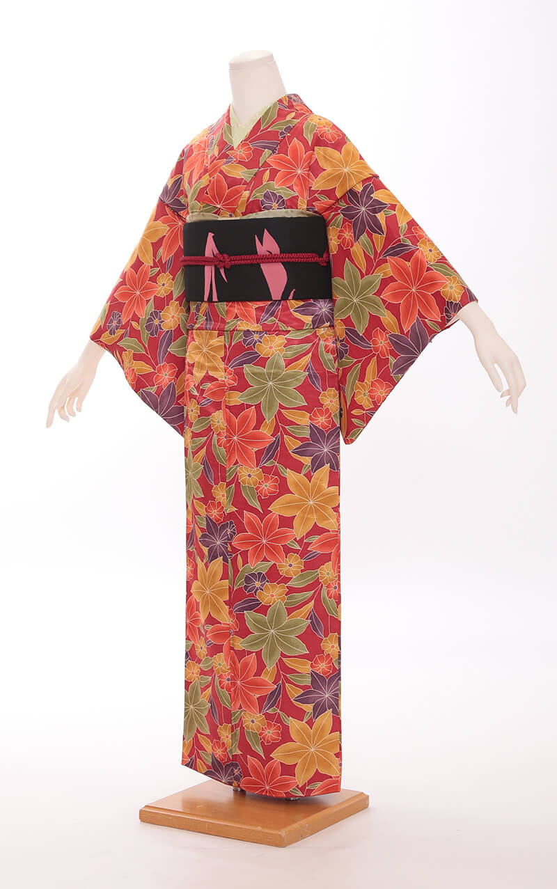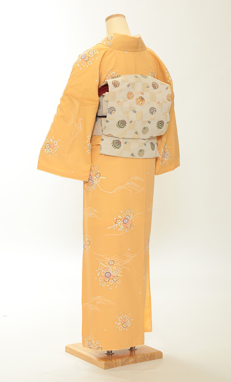 순견 허리띠도 다수 준비되어 있습니다. 허리띠 매듭은 '오타이코'라 불리는 사각형이며, 깔끔한 뒷모습을 연출합니다.