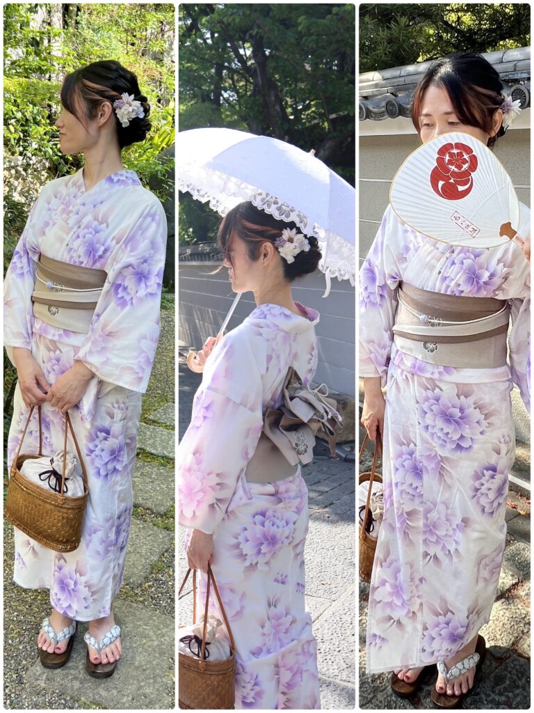 ・ 착용 시기: 기모노는 계절에 맞는 다양한 종류가 있어 연중 내내 착용할 수 있지만, 유카타는 주로 여름(6월~9월)에 입습니다.