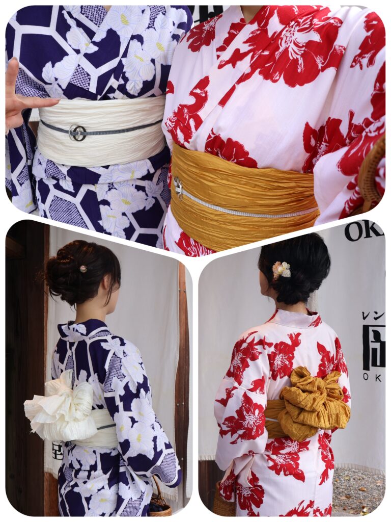 여름 기모노에 맞춰서 마(麻) 소재의 오비(허리띠)나 레이스 느낌의 오비지메도 멋지겠죠!