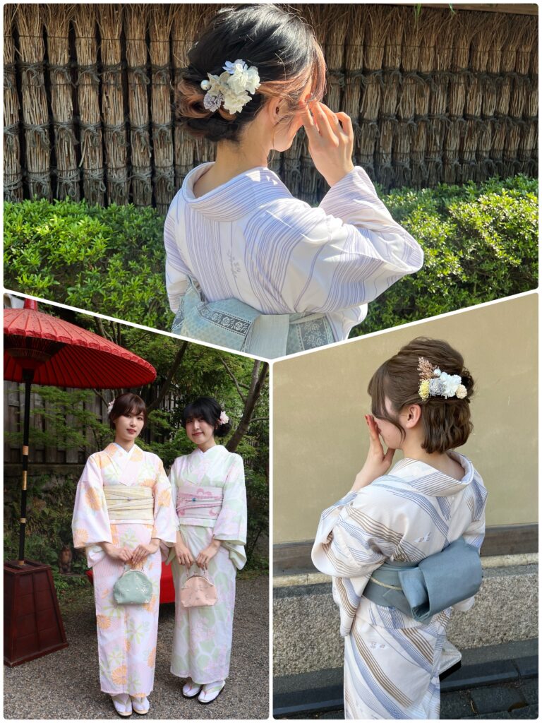 6월부터 8월까지 교토는 덥지만, 기모노 렌탈을 즐기실 수 있습니다! 이 시기에 어울리는 기모노는 시원한 느낌의 「여름 기모노(夏着物)」입니다. 여름 기모노는 더운 계절에도 시원하게 입을 수 있는 특별한 기모노입니다. 일반적으로 「히토에(ひとえ)」나 「우스모노(うすもの)」라고 불리는 기모노가 사용됩니다.