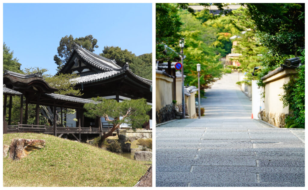 사찰 내부에는 히데요시와 네네를 모신 영묘가 있어 역사적 의미도 깊은 장소입니다. '네네의 길'은 고다이지에서 이어지는 역사적인 산책로로, 오래된 마을 풍경이 남아 있는 정취 있는 길입니다.
