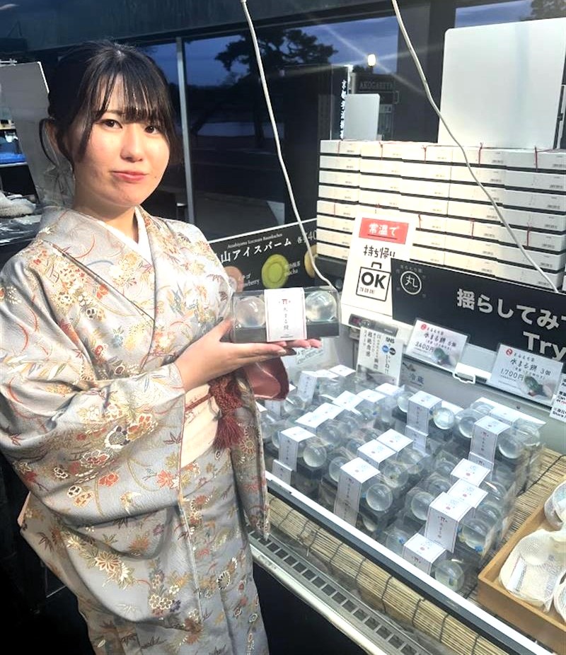 쫄깃쫄깃한 물방울 찹쌀떡을 가까이서 보면 누구든지 손가락으로 만지고 싶어집니다.