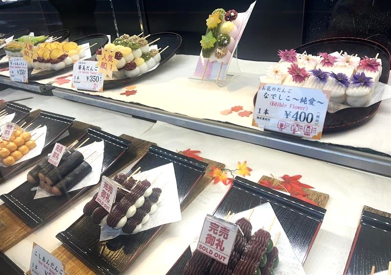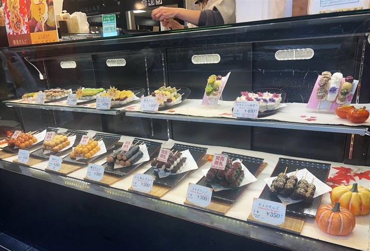 진열된 귀여운 단고들의 토핑이 적절히 빛을 받아 반짝반짝 ✨ 빛나기 때문에