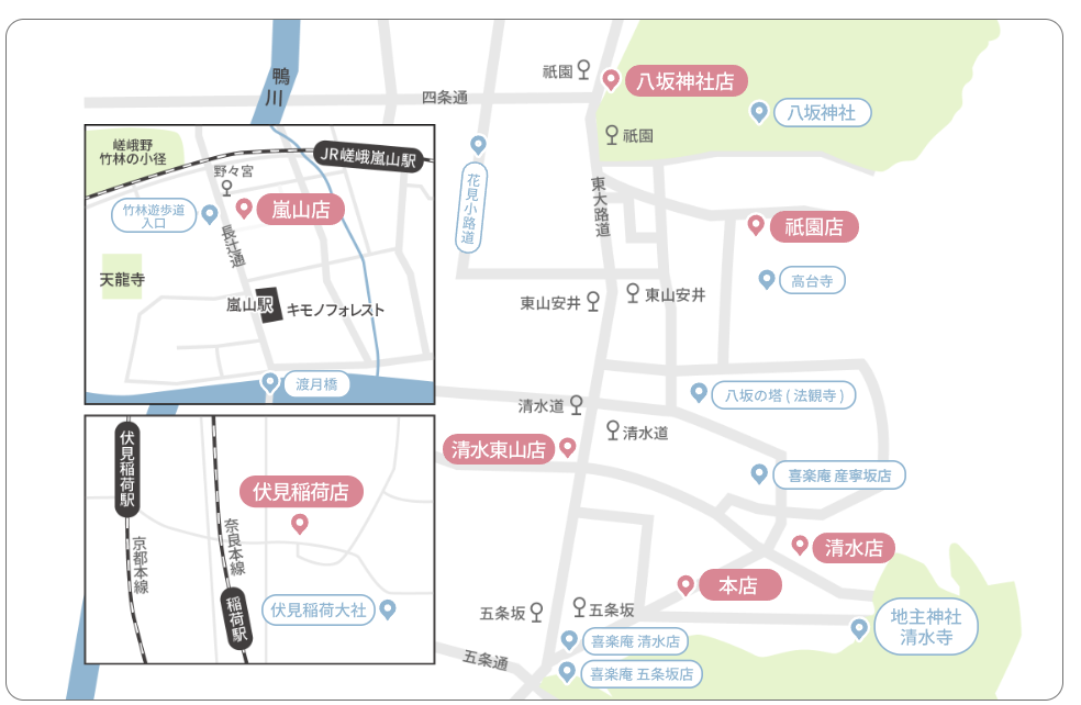 전화 +81-75-533-8900 / FAX +81-75-533-8910 / E-mail kiyomizuhigasiyama@okamoto-kimono.com