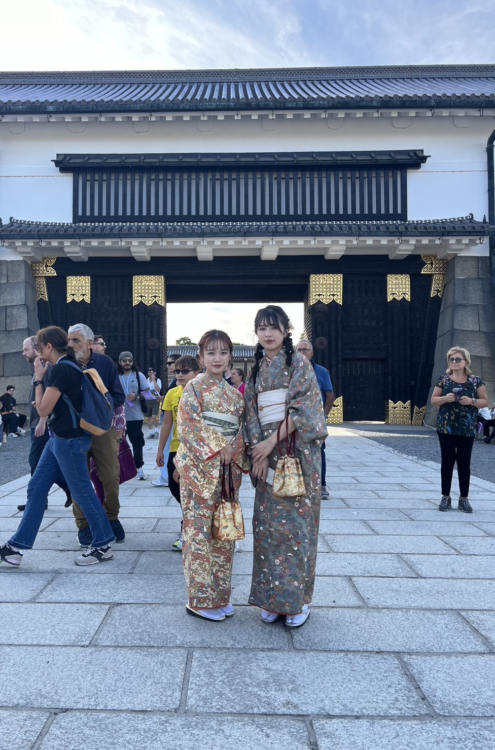 해자 위를 걷다 보면 성에 온 것 같은 기분이 들고, 다리 위에서 기모노 차림은 정말 잘 어울립니다.