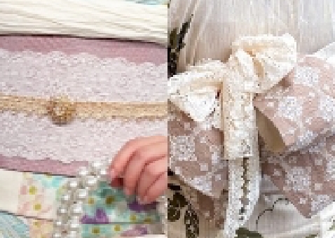 고급스러운 분위기를 연출히는 레이스를 코디네이트의 포인트로.