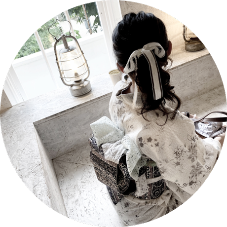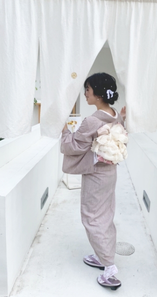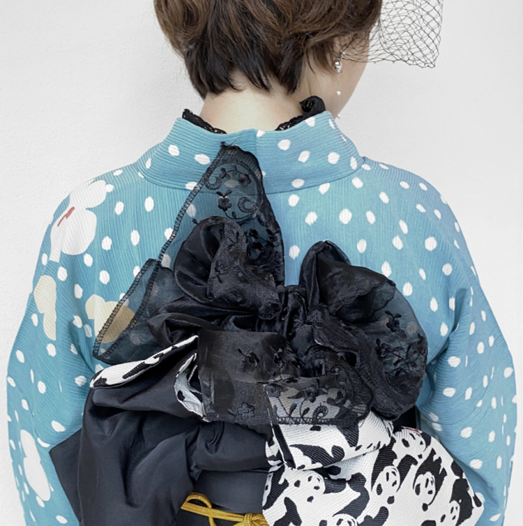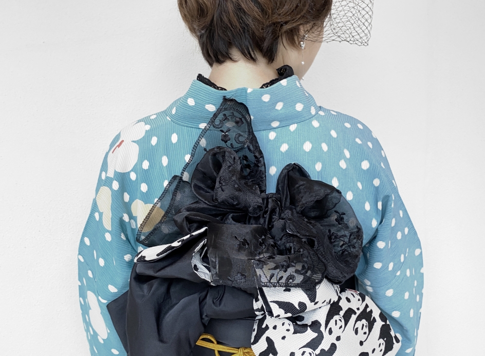 가방, 액세서리, 레이스 터틀넥, 오비용 액세서리 등을 기모노와 맞춰 크리에이티브하게 연출