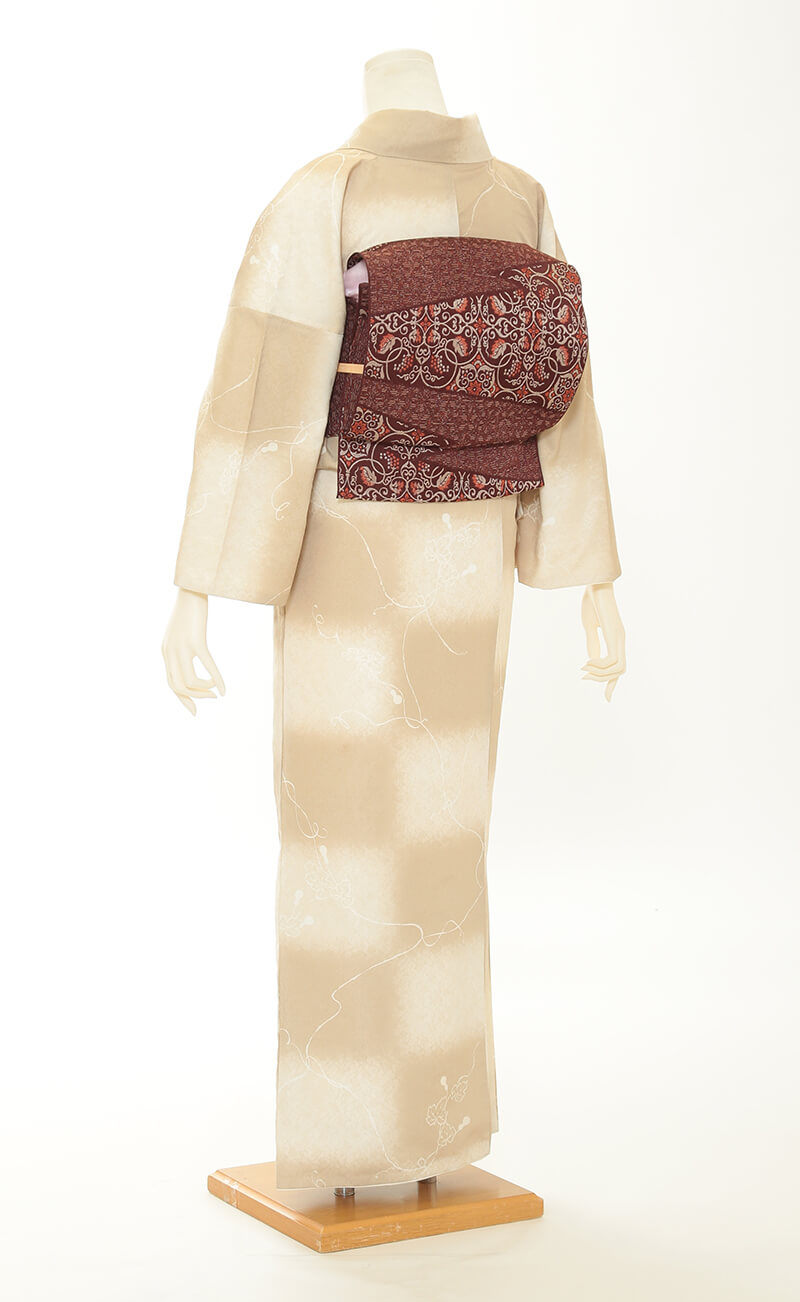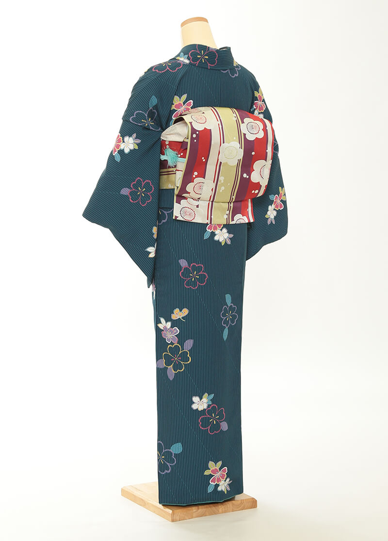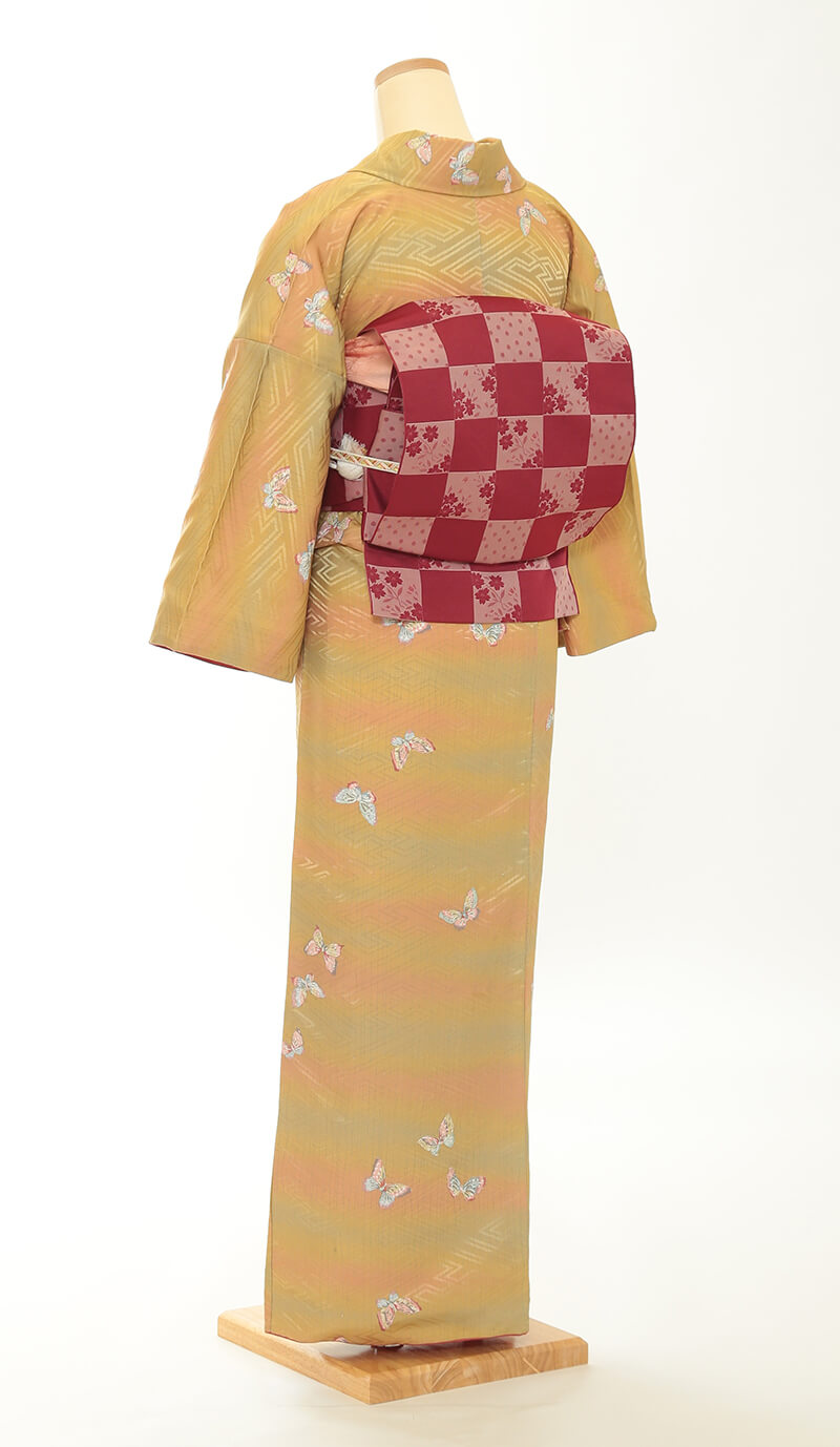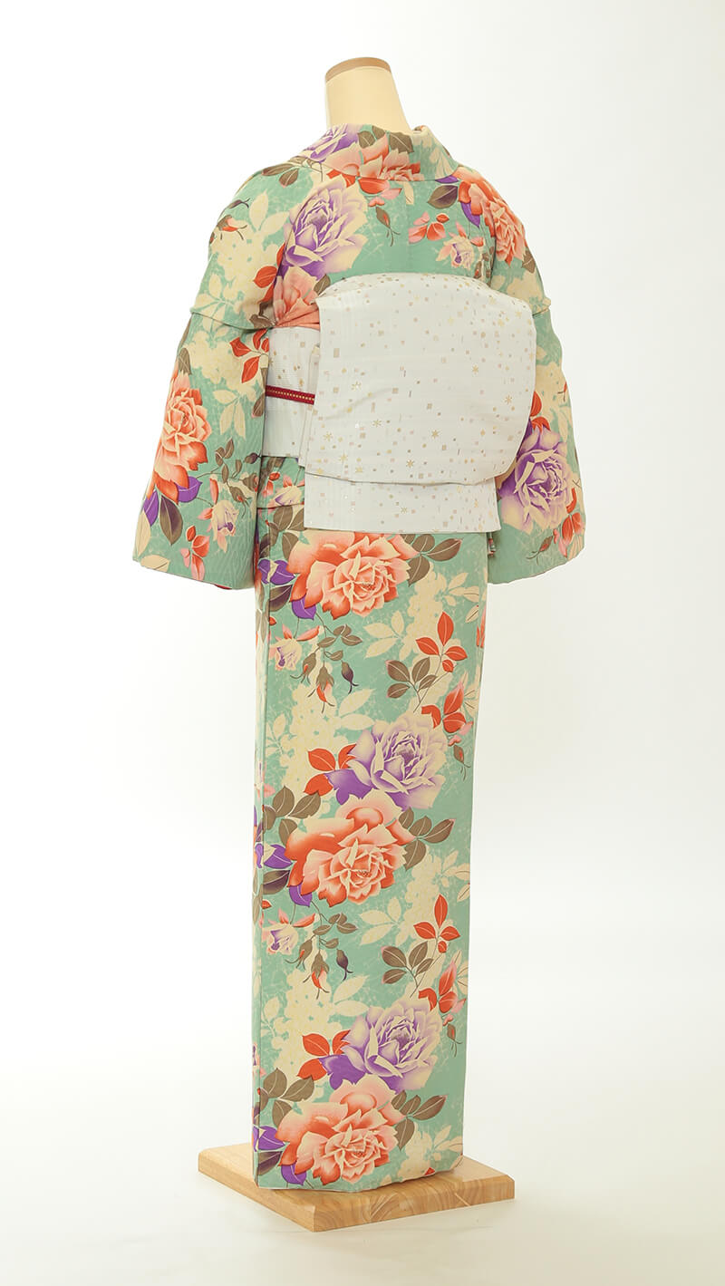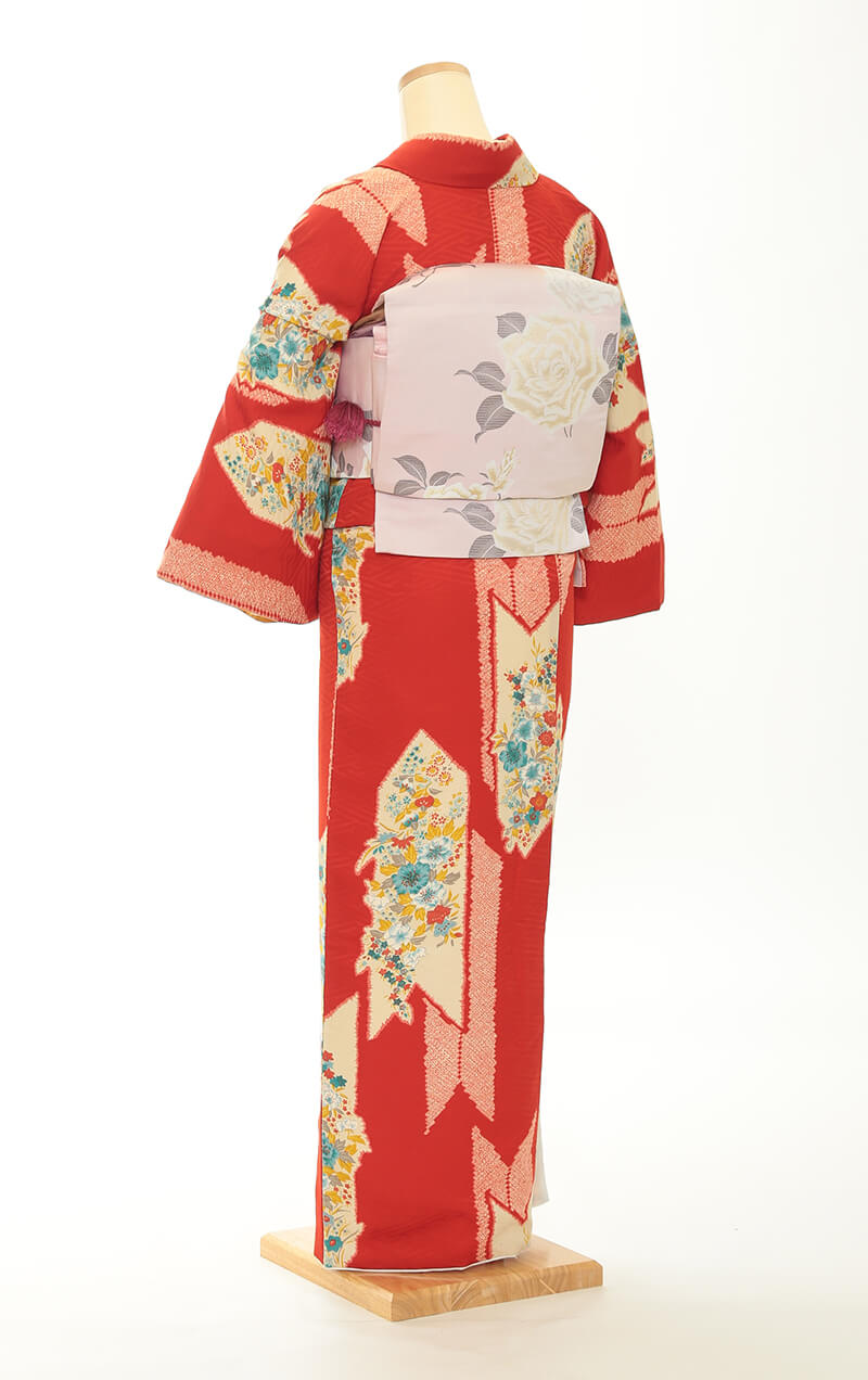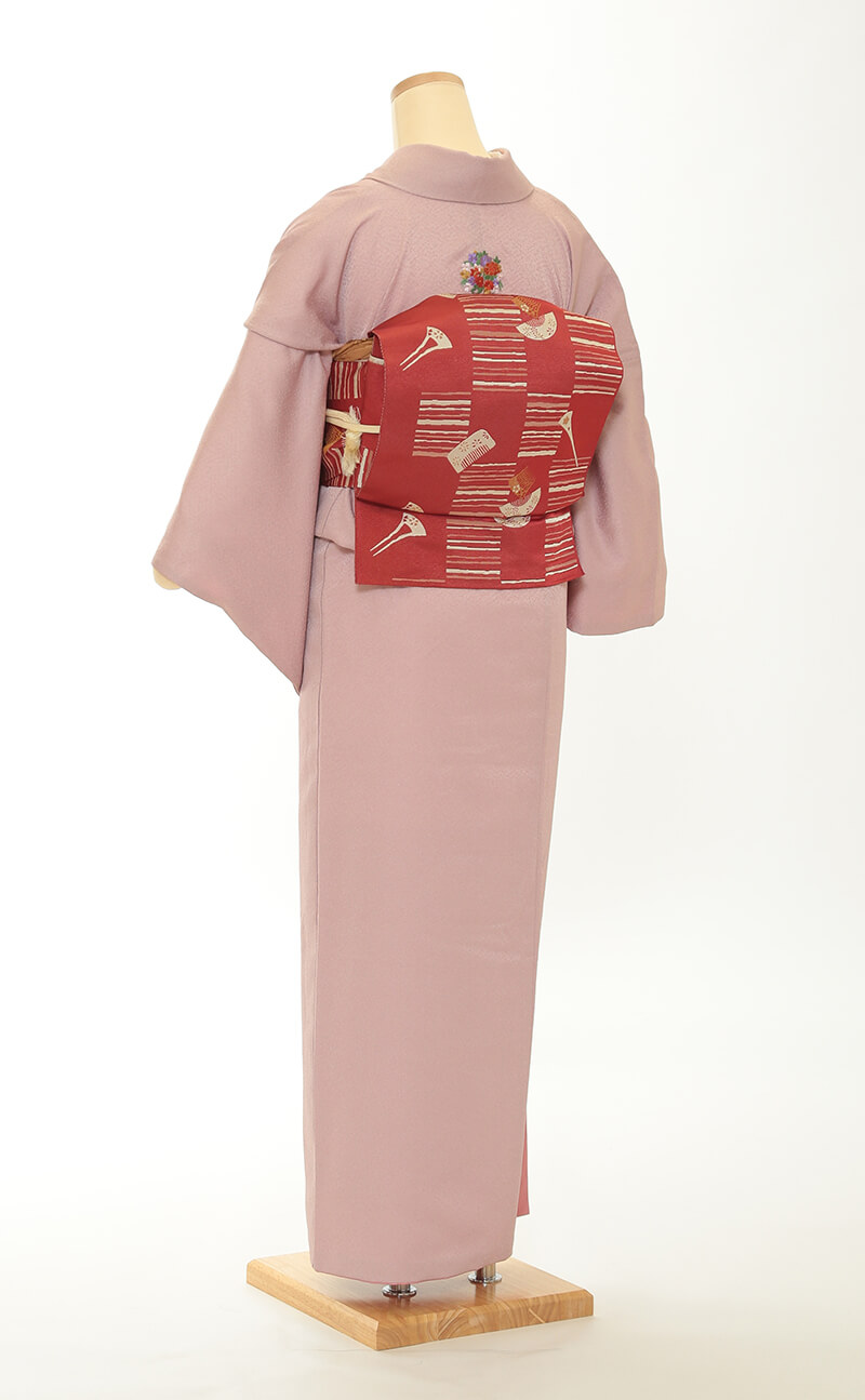 순견 허리띠도 다수 준비되어 있습니다. 허리띠 매듭은 '오타이코'라 불리는 사각형이며, 깔끔한 뒷모습을 연출합니다.