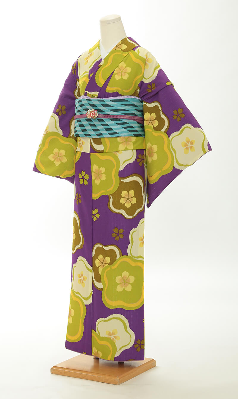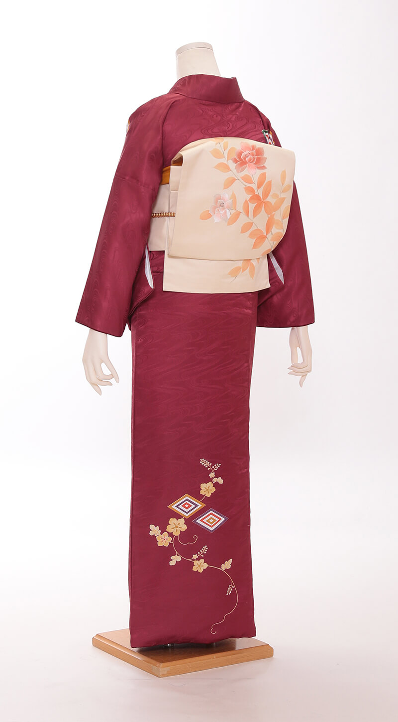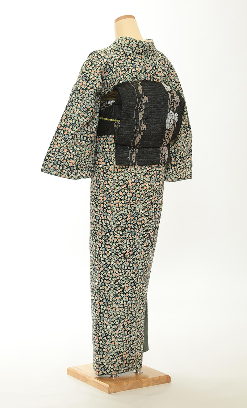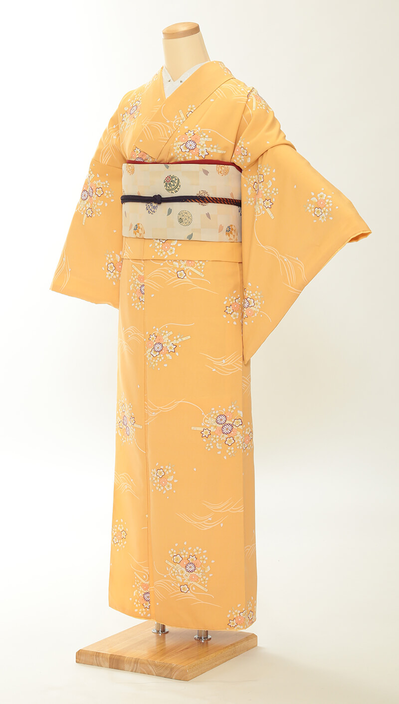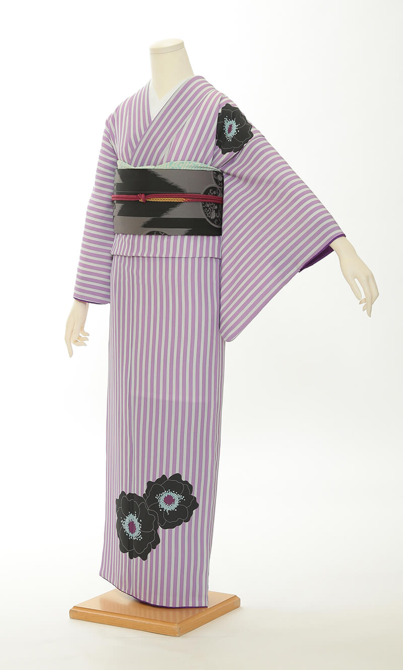 순견 허리띠도 다수 준비되어 있습니다. 허리띠 매듭은 '오타이코'라 불리는 사각형이며, 깔끔한 뒷모습을 연출합니다.