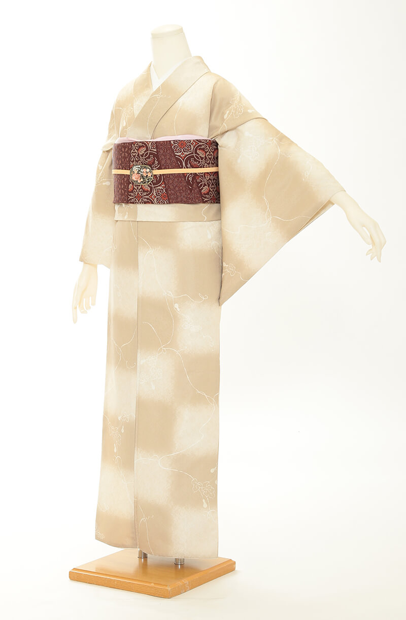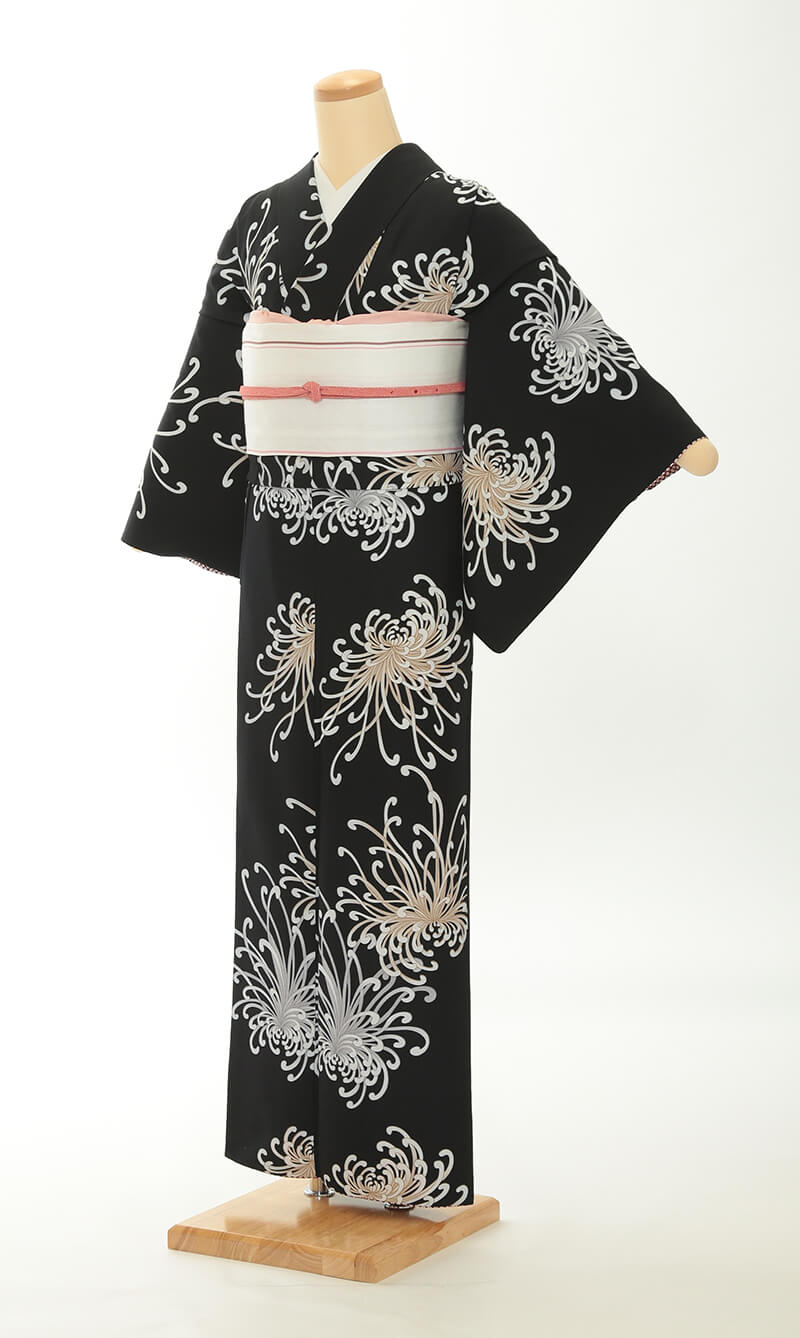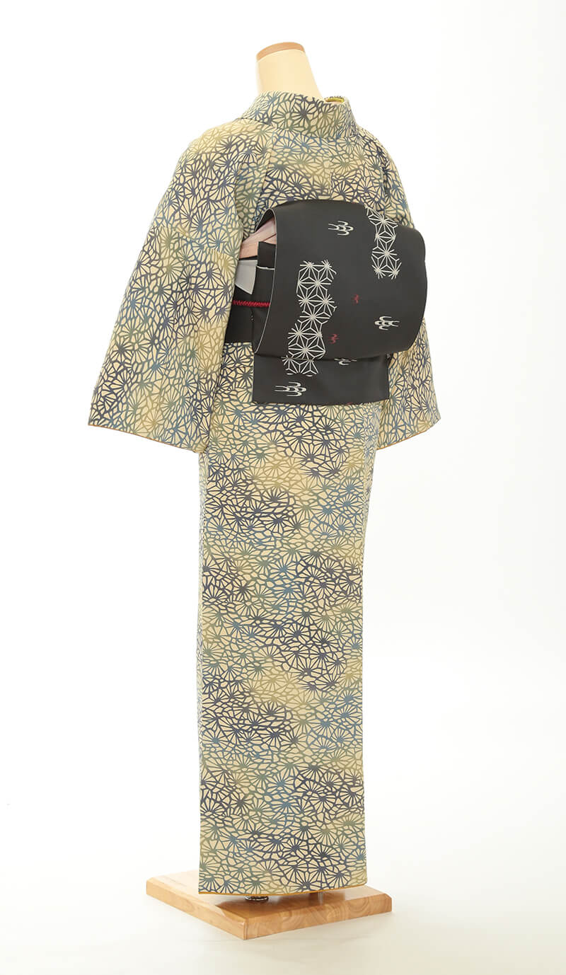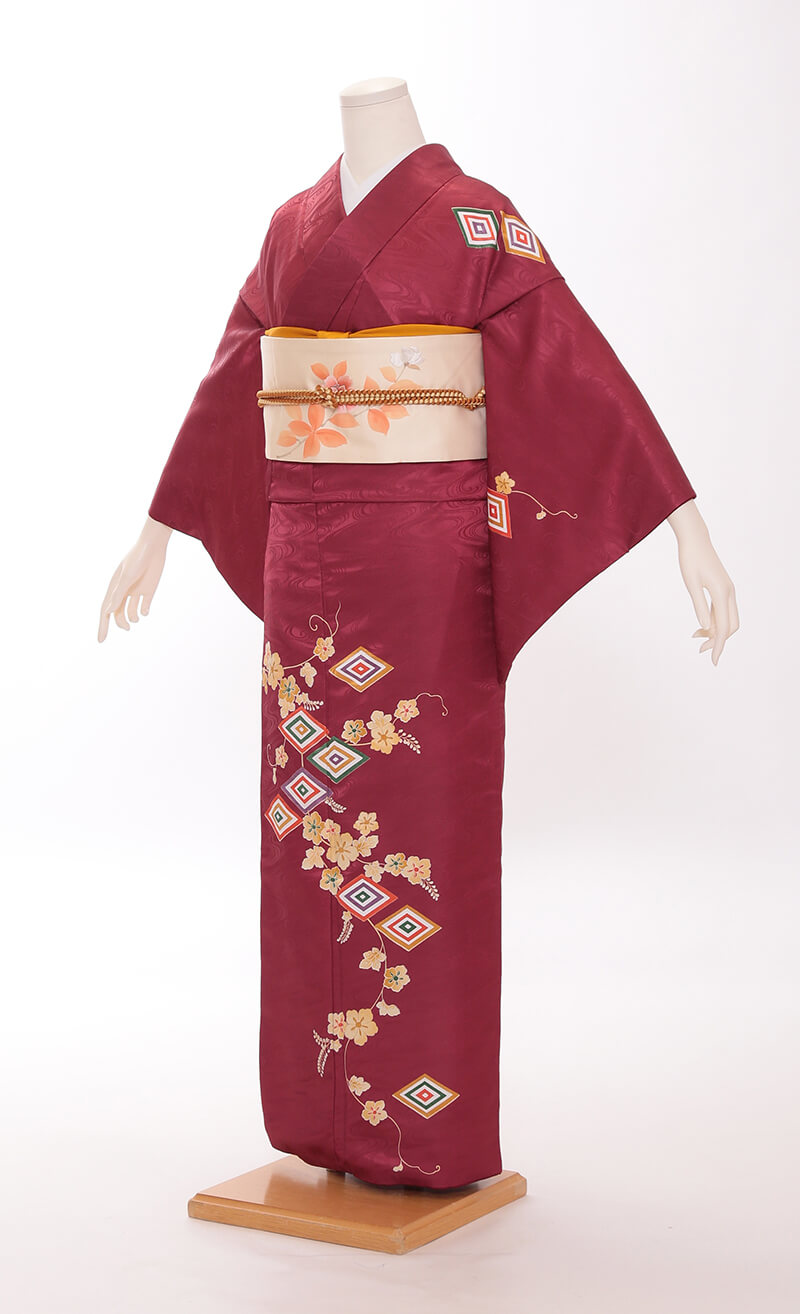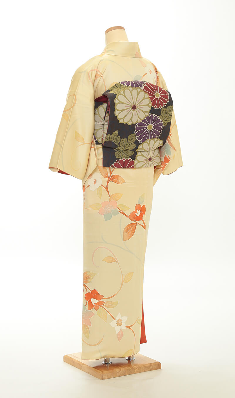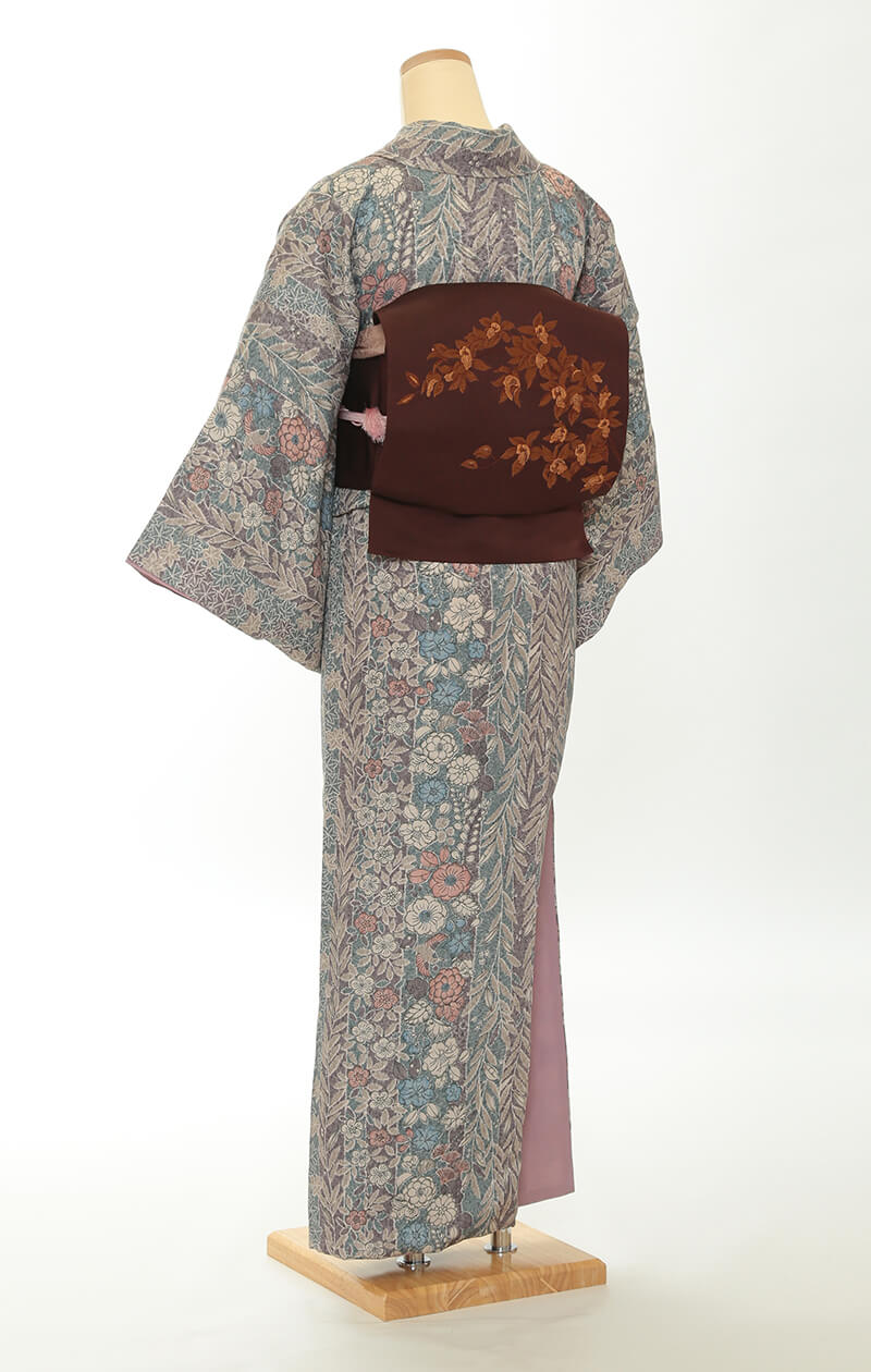 순견 허리띠도 다수 준비되어 있습니다. 허리띠 매듭은 '오타이코'라 불리는 사각형이며, 깔끔한 뒷모습을 연출합니다.